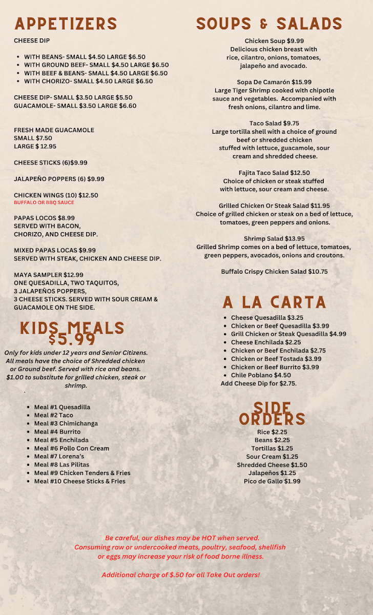 The menu at Plaza Maya Grill Mexican Restaurant offers a warm and approachable selection rooted in traditional Mexican flavors with a casual, comforting style. Whether you're stopping by for a relaxed lunch or a laid-back dinner, you'll find a variety of dishes that suit moments of both everyday enjoyment and simple gatherings.